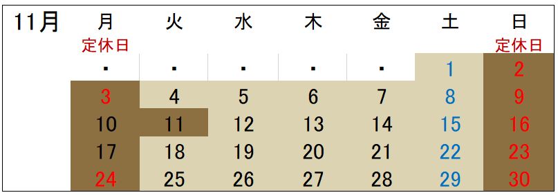 ・11月11日(火)は都合により休診とさせて頂きます