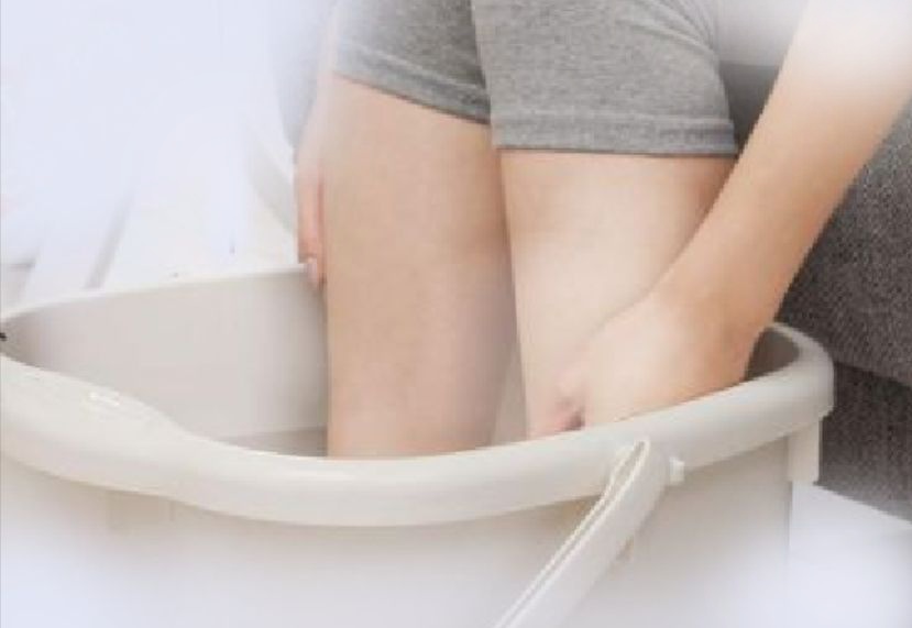 3. 椅子やソファーにゆったり座り、ゆっくりと熱さに慣らしながら足首まで沈めましょう