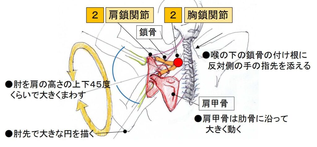 2.肩甲骨と鎖骨(首の付け根から肩にかけての動き)