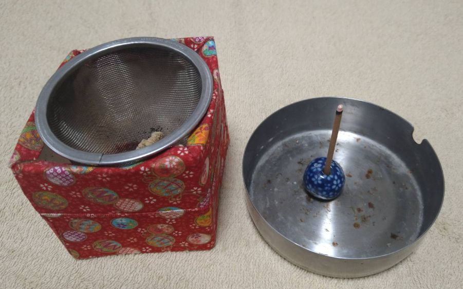 【7】 茶こしの中のもぐさを灰皿に空けて、念のため水道で水をかけてしっかり火を消して三角コーナーなどに捨てましょう