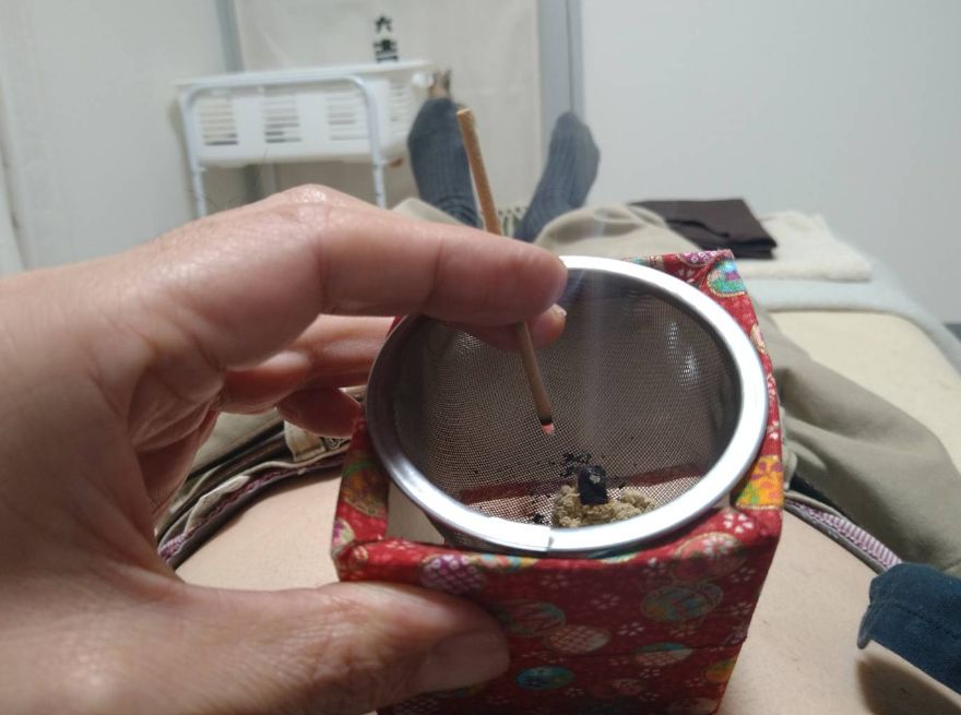【4】 次第にもぐさに火がまわり、温かくなってきます