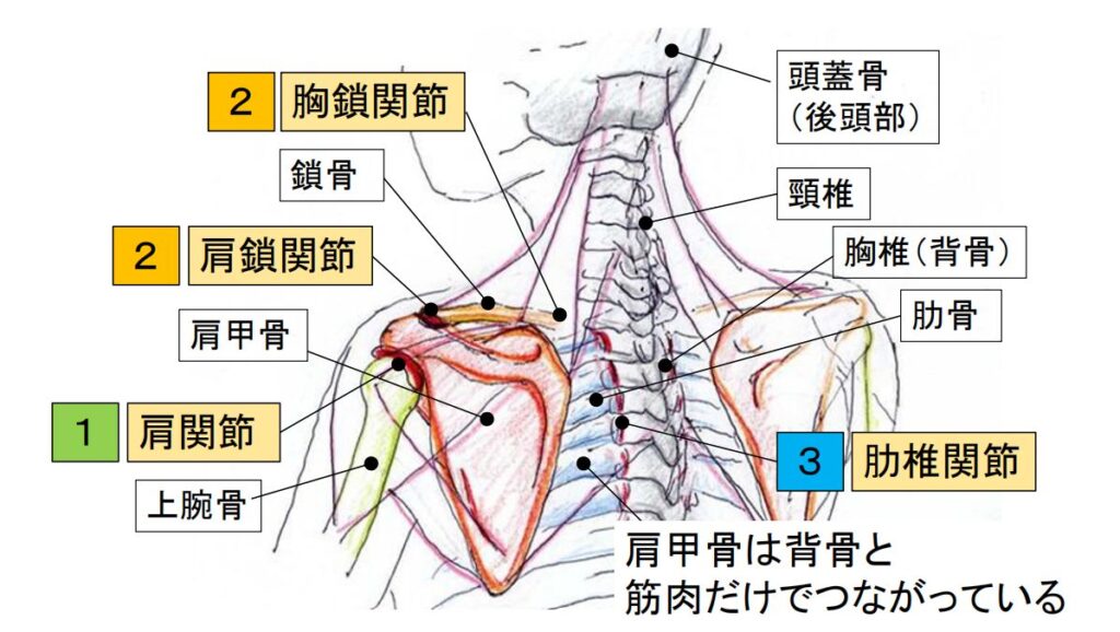 ■肩を動かす構造を骨とその動きの視点でみると、大きく3つに分けることができます
